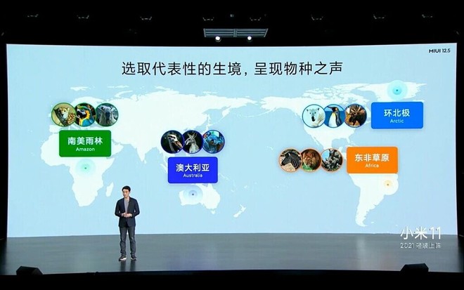 Um dos recursos mais aguardados a estrear junto à MIUI 12.5 é os Super Wallpapers são papéis de parece animados que interagem com a tela de bloqueio e os movimentos realizados pelos usuários. Com a MIUI 12.5, a fabricante estreia duas novas opções: Geometry, que adiciona diversas formas geométricas com diferentes efeitos visuais, e Snow Mountain, que mostra diferentes ângulos de uma montanha nevada.